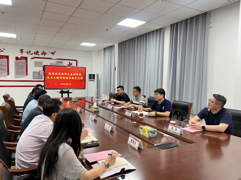 6月13日下午,南京师范大学泰州学院电力工程学院经理朱明祥、党委书记夏慧明一行五人来公司考察交流。公司班子成员、教研室和实验室主任、专职组织员参加交流活动。